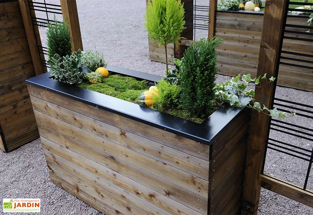 Cette jardinière possède des rebords métalliques thermolaqués noirs pour résister efficacement face à la rouille et à la corrosion, tout en lui donnant un aspect design et moderne. Votre bac à fleurs pourra donc rester à l’extérieur tout au long de l’année car il résiste aux intempéries, à la moisissure et aux attaques d’insectes.