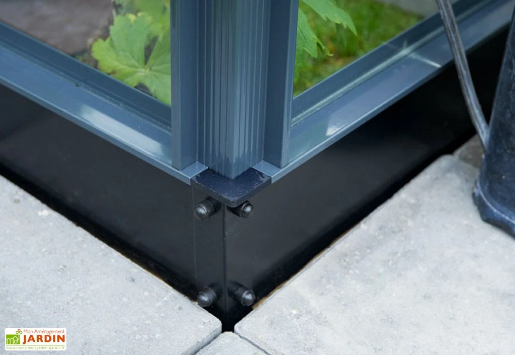 L’embase en acier galvanisé permet d’installer le jardin d’hiver Juliana Oase 13,5 m². Elle mesure 368 x 368 cm de côté et permet de rehausser la structure de la serre de 12 cm. Tout comme la serre, cette base ne craint pas la corrosion et ne demande aucun entretien.