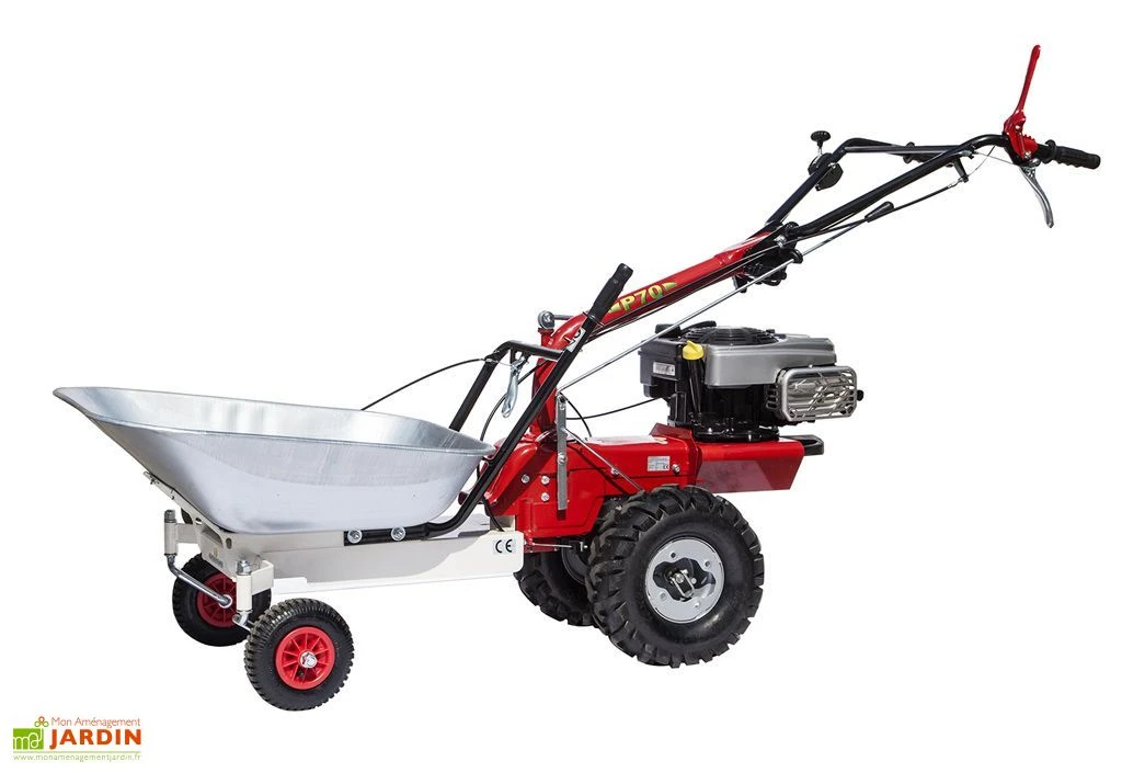 La cuve de transport s’installe sur le Porte Outils Thermique Multifonctions 190 CC – P70. Elle permet de le transformer en véritable brouette thermique. La cuve possède une contenance de 85 litres et peut supporter jusqu’à 75 kg.