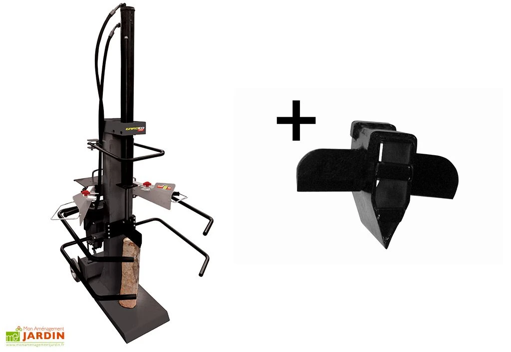 Cette fendeuse de bûches verticale est équipée d’une enclume biseautée en acier et est livrée accompagnée d’un coin en croix permettant de fendre vos bûches non pas en deux, mais en quatre parties. Notez que pour un transport et un déplacement plus aisés, ce fendeur de bûches électrique s’est vue doté de deux roulettes.