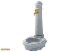 La grande fontaine mesure 1,60 m de hauteur, 62 cm de profondeur et 90 cm de largeur. Très travaillée et extrêmement résistante, cette fontaine haute qualité trouvera sa place dans un jardin, adossée à un mur ou sous une grande véranda. Le robinet Colvert inclus est livré avec un adaptateur pour tuyau d’arrosage.