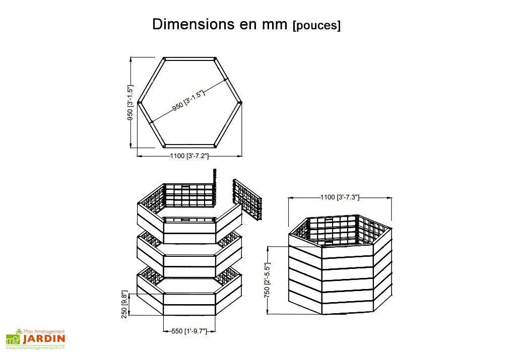 La livraison comprend deux carrés potagers. Vous pouvez les utiliser indépendamment et bénéficier ainsi de 2 jardinières dans votre jardin ou vous pouvez les superposer pour disposer d’une jardinière haute. Chaque carré potager est constitué de 6 parois et mesure 110 cm de longueur, 95 cm de largeur et 25 cm de hauteur. Il bénéficie d’une contenance de 200 litres seul et de 400 litres lorsqu’ils sont empilés.