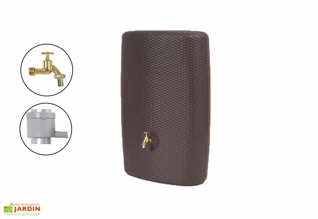 Votre Cuve Récupération d’Eau Pluie Sunda 300 L en polyéthylène, monobloc sans soudure, traité anti-U.V. de chez Garantia est un produit de qualité, moderne, décoratif et original. La cuve est fournie avec : un collecteur éco gris pour le raccordement à la gouttière et un robinet en laiton. La cuve d’un faible encombrement se place facilement contre un mur.