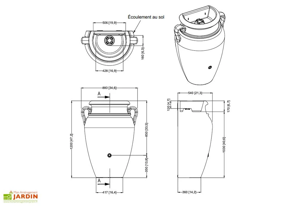L’eau de pluie dépourvue de calcaire et de chlore est de meilleure qualité. Cette cuve est décorative et embellira votre jardin. Vous pouvez même ajouter des plantes au-dessus. Elle est équipée d’un bouchon de vidange afin de faciliter la purge avant l’hiver.
