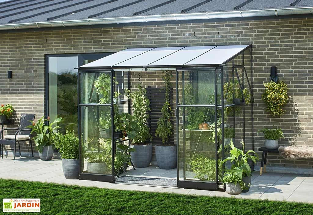 Afin de vous offrir des conditions de culture optimales, cette serre adossée s’est vue dotée de parois en verre trempé de 3 mm d’épaisseur, pour une excellente transmission de la lumière naturelle, une filtration efficace des rayons UV nocifs et une bonne conservation de la chaleur. Le verre trempé est également plus solide que le verre horticole traditionnellement utilisé pour les vitrages des serres de jardin et se montrera plus sûr en cas de casse.