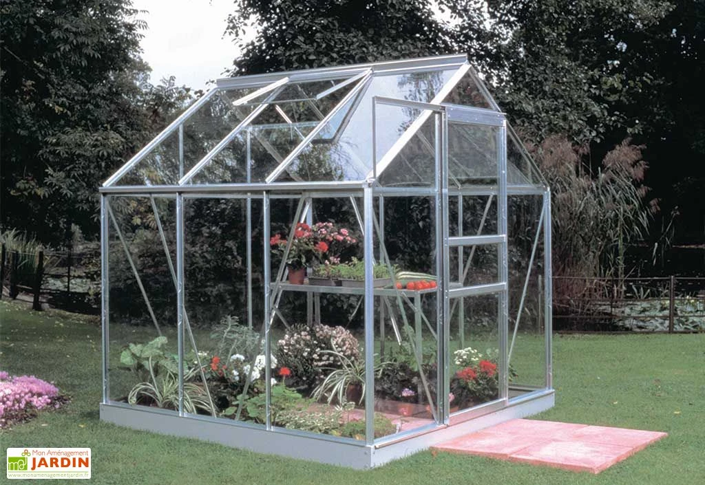 Cette serre en verre trempé est livrée en kit, à monter soi-même.