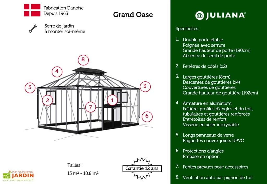 Le jardin d’hiver est livré en kit avec une notice de montage détaillée pas à pas, permettant de faciliter l’assemblage. Des vidéos son également disponibles pour vous aider lors du montage.