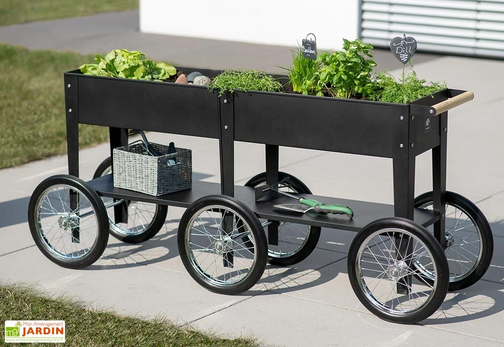 Grâce à ses 6 roues et à sa poignée, le potager surélevé se déplace facilement. Vous pourrez ainsi le changer de place en fonction de l’orientation du soleil.