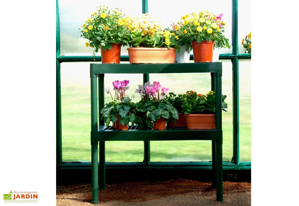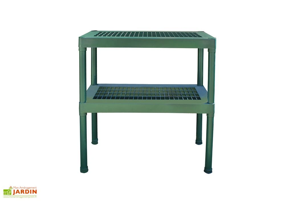 Cette double étagère Palram-Canopia est fabriquée en polypropylène, ce qui la rend à la fois solide et légère. Facile à nettoyer, elle est perforée afin de faciliter la circulation de l’air, mais également le drainage de l’eau qui pourrait s’écouler de vos pots. Très pratique, cette étagère affiche des dimensions de 40 x 80 cm, pour 85 cm de haut. Elle vous permettra d’organiser l’espace intérieur de votre serre de jardin.