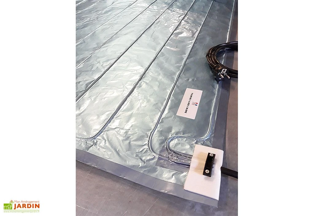 Cette nappe chauffante pour semis est composée de deux feuilles d’aluminium enveloppant un fil résistif isolé à l’aide de silicone. Chacune des faces de la nappe est dotée d’un revêtement en polyester. Le tout devra être raccordé à l’électricité via le câble d’alimentation de 2 m également inclus. Une fois branchée, cette nappe chauffante affiche une puissance comprise entre 150 et 170 W/m² (230 V).