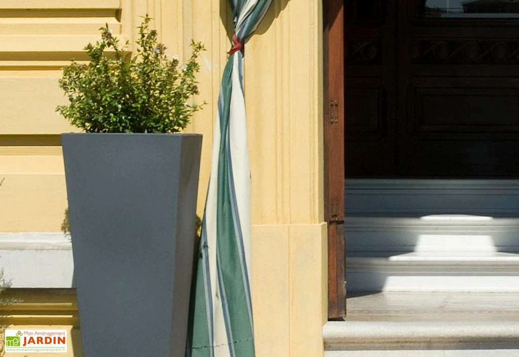 Ce pot de fleurs fabriqué en Italie possède des dimensions de 39 cm de côté et 85 cm de hauteur. Ce grand pot de fleurs saura trouver sa place dans votre jardin ou au bord de votre piscine. Le matériau qui compose cette jardinière est le polyéthylène qui est une matière 100 % recyclable.