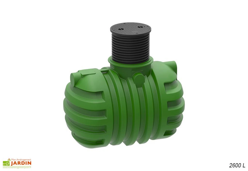 Facile à installer, notamment grâce à son fond plat, ce récupérateur d’eau de pluie devra être enterré non loin de votre maison. Il est fabriqué en polyéthylène moulé, un matériau très résistant et entièrement recyclable. Notez donc qu’une fois enterrée, cette cuve ne craindra pas l’humidité et ne se déformera pas, même après plusieurs années. Sept tailles sont disponibles, selon vos besoins : 2200, 2600, 3000, 3300, 3500, 5000 ou 6000 litres.