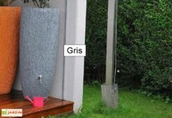 Cette fontaine extérieure est dotée d’une vasque ronde de 60 cm de diamètre et d’un pilier de 130 cm de haut qui intègre un robinet en métal. Vous pourrez ainsi profiter d’un point d’eau fonctionnel situé directement dans votre jardin pour remplir un arrosoir ou pour connecter un tuyau d’arrosage, par exemple. Notez qu’une fois l’hiver venu et en cas de gel, il est conseillé de vider la vasque.
