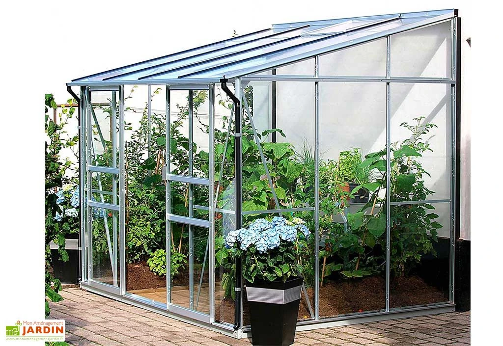 La serre adossée est parfaite pour équiper un petit jardin ou une terrasse. Ses parois sont composées de verre trempé securit de 3 mm d’épaisseur. En cas de choc, le verre securit n’explose pas, il se brise en petits morceaux non coupants. La toiture est en polycarbonate de 6 mm d’épaisseur, ce qui garantit une bonne isolation dans la serre.