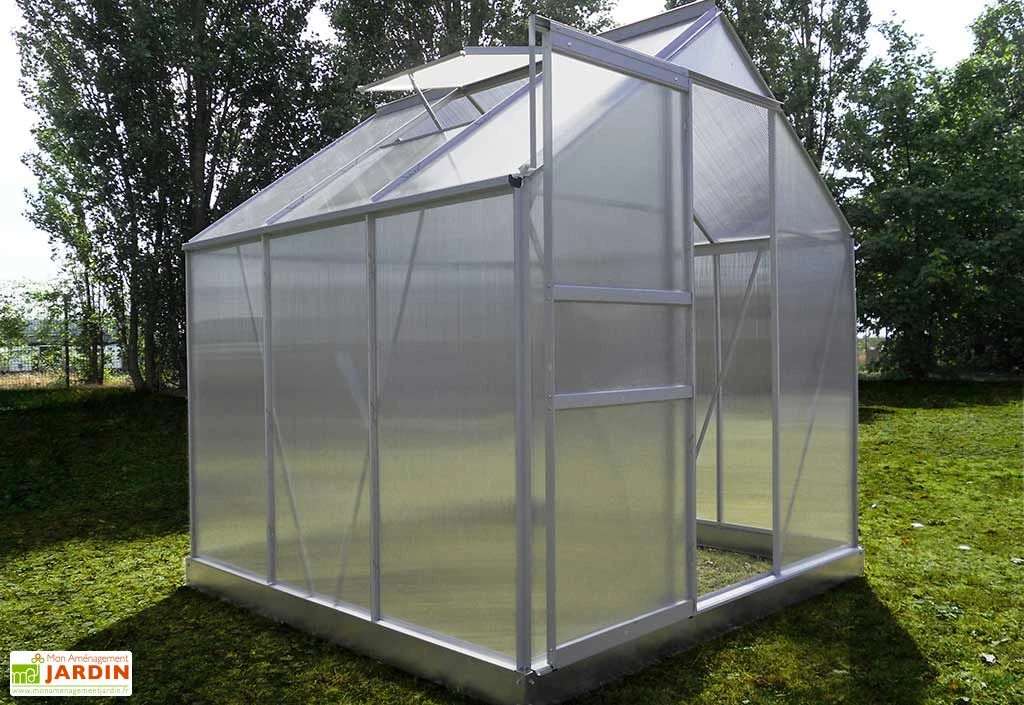 La serre de jardin de chez Chalet-Jardin dispose d’une structure en aluminium anodisé et d’une couverture en polycarbonate alvéolaire. Les parois de la serre mesurent 4 mm d’épaisseur et sont traitées contre les UV.