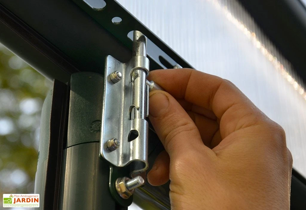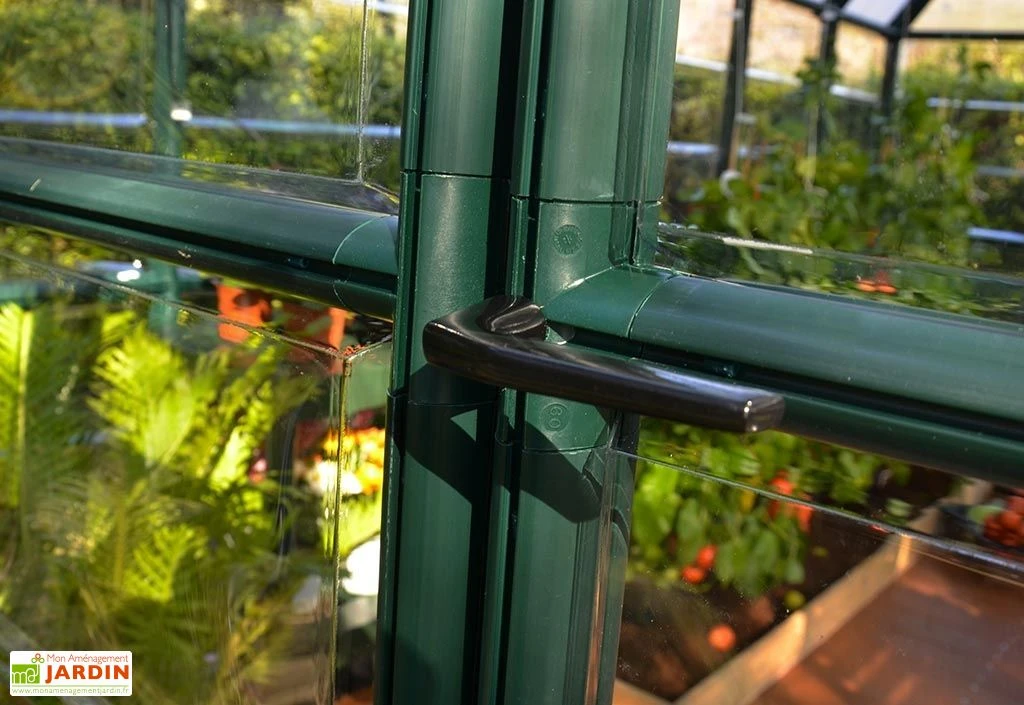 La serre de jardin est équipée d’une fenêtre de toit qui permet d’aérer facilement l’intérieur et ainsi contrôler la température et le taux d’humidité. Elle est également équipée d’une double porte de 120,5 x 194 cm (l,h). Pratique, elle permet d’entrer et sortir confortablement de l’abri même avec un équipement volumineux et d’aider à l’aération de la serre.