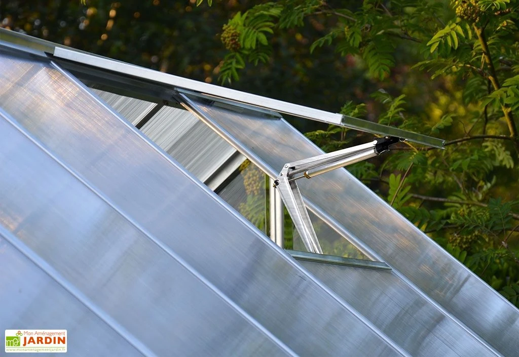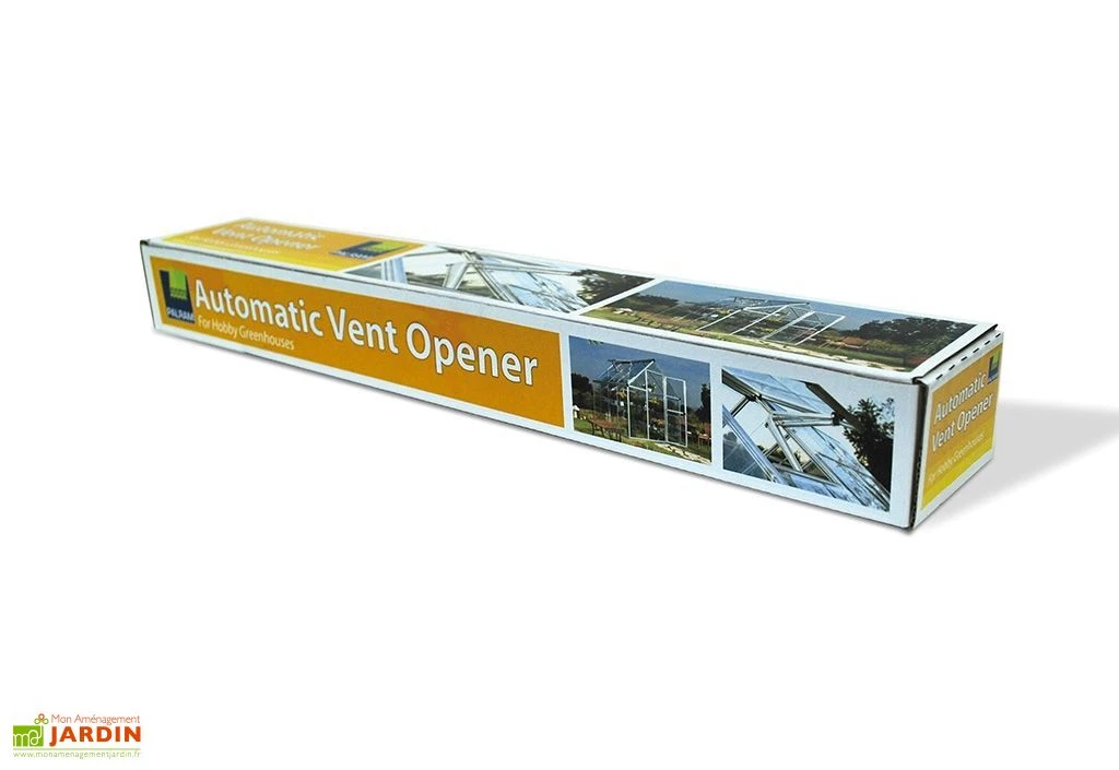L’ouverture automatique de lucarne s’installe sur les serres de la marque Palram-Canopia. Elle permet de contrôler facilement la température et le taux d’humidité à l’intérieur de la serre. Plus l’air se réchauffe à l’intérieur de la serre, plus le mécanisme s’ouvre progressivement, plus l’air se refroidit, plus il se ferme.