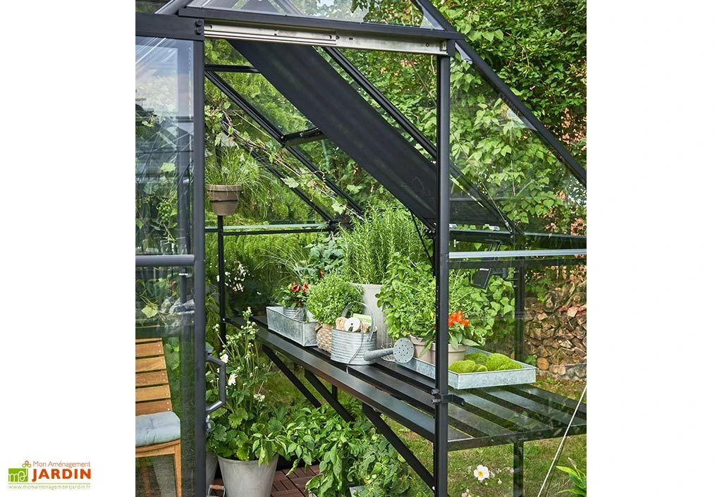 Avec des dimensions de 64 x 182 cm, cette table de culture vous offrira suffisamment d’espace pour préparer vos semis ou rempoter vos plantes. Facile à installer, elle est pensée pour être intégrée à l’intérieur de la serre en la fixant directement sur les parois, ce qui permet d’économiser de la place au sol.