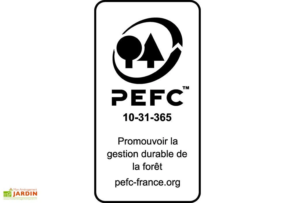 La table de préparation est fabriquée en bois de pin de 16 mm d’épaisseur. Ce bois est traité autoclave classe 3, il ne craint donc pas la moisissure et les insectes. Il est également certifié FSC, ce qui signifie qu’il provient de forêts gérées de façon écologique et durable.